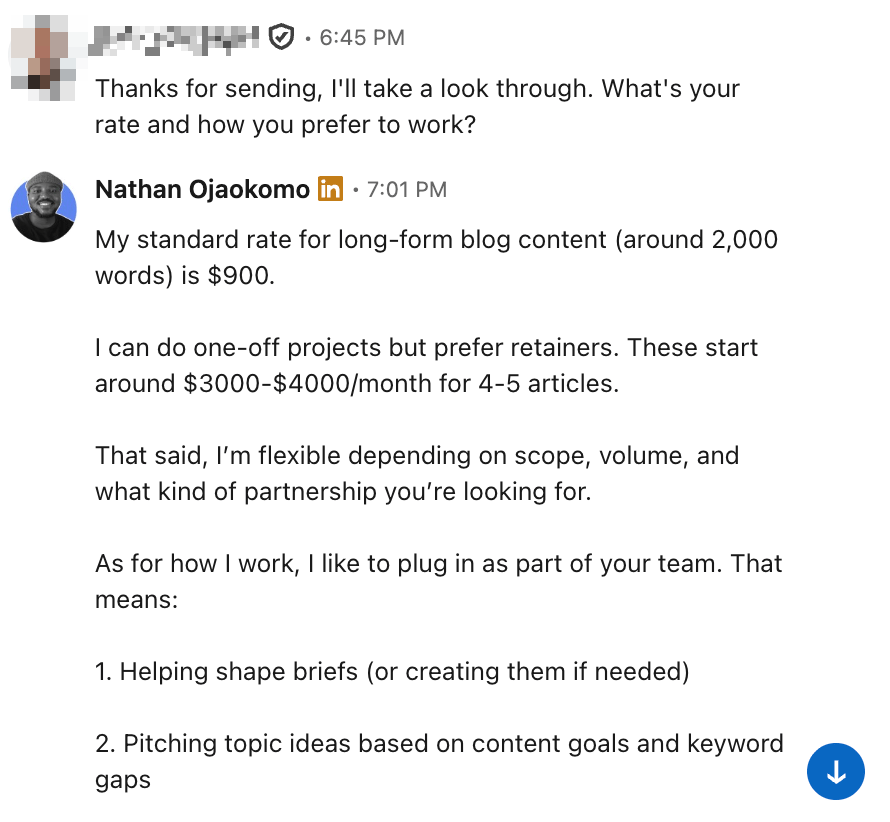 Once your positioning gets you in the door and a client says, βOkay, what are your rates?β you might need to give them more than just the price, especially if they can get it cheaper elsewhere.